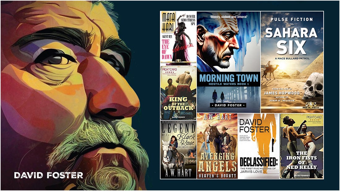 Australian adventure author, David Foster, writes under the pen names James Hopwood, A.W. Hart, and Jack Tunney. He has written seven novels, and his short fiction has been published in over 50 publications around the world.