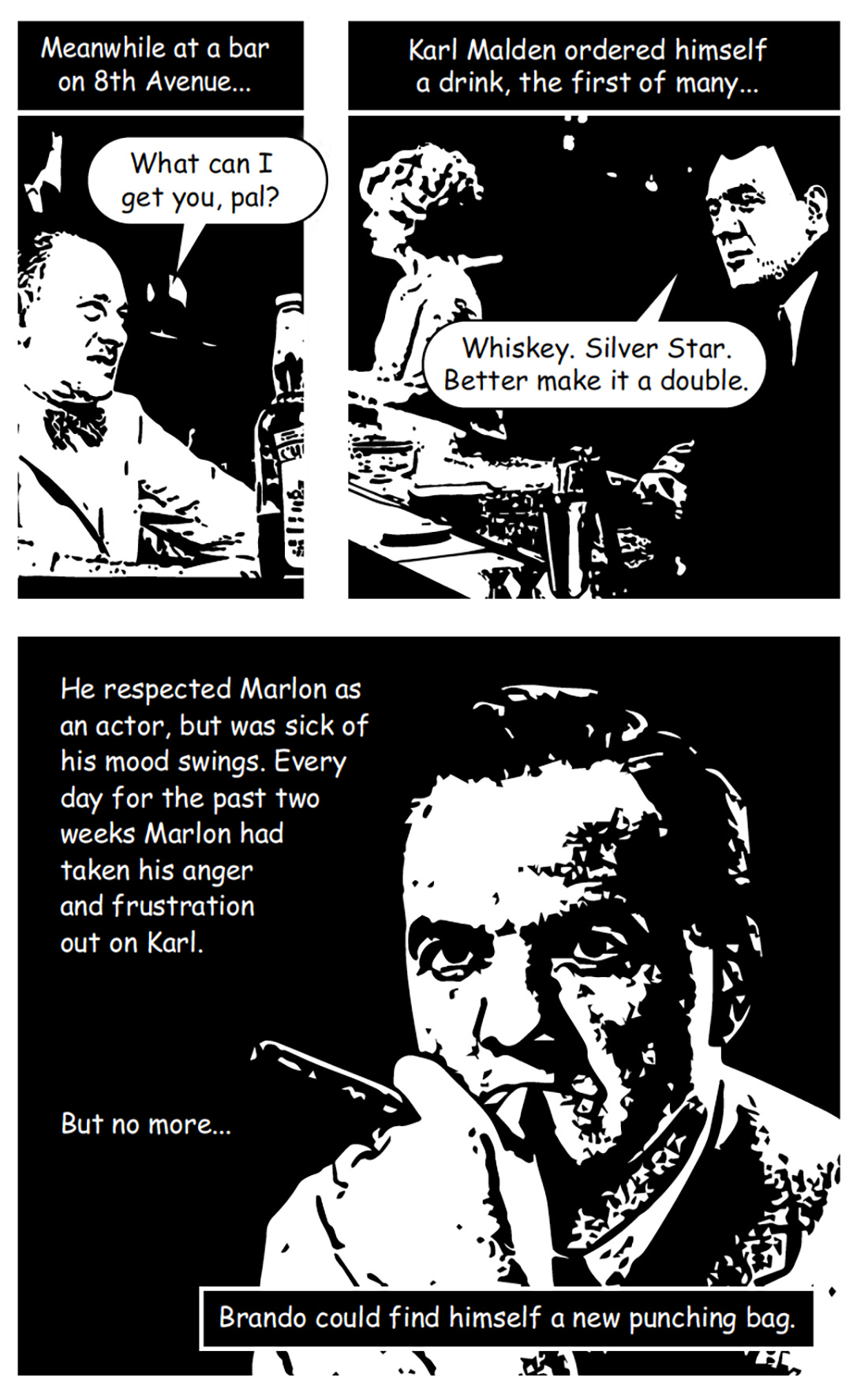 Marlon picked up both sets of boxing gloves and went searching for an opponent. As he stomped around backstage, he sought out his friend Karl Malden? He knew Karl could take a punch, but alas, his friend was nowhere to be found. He would have to find someone else.